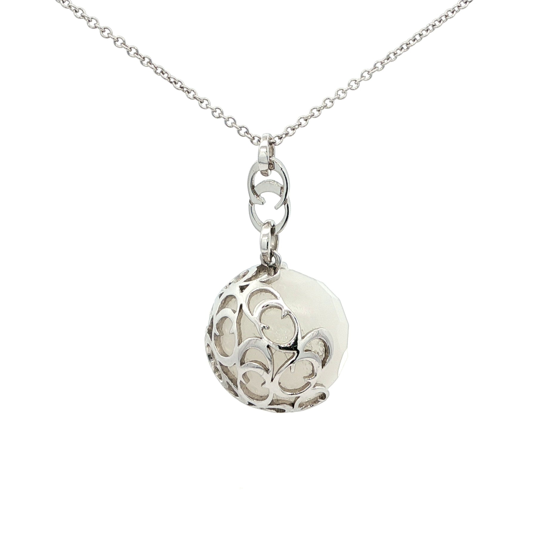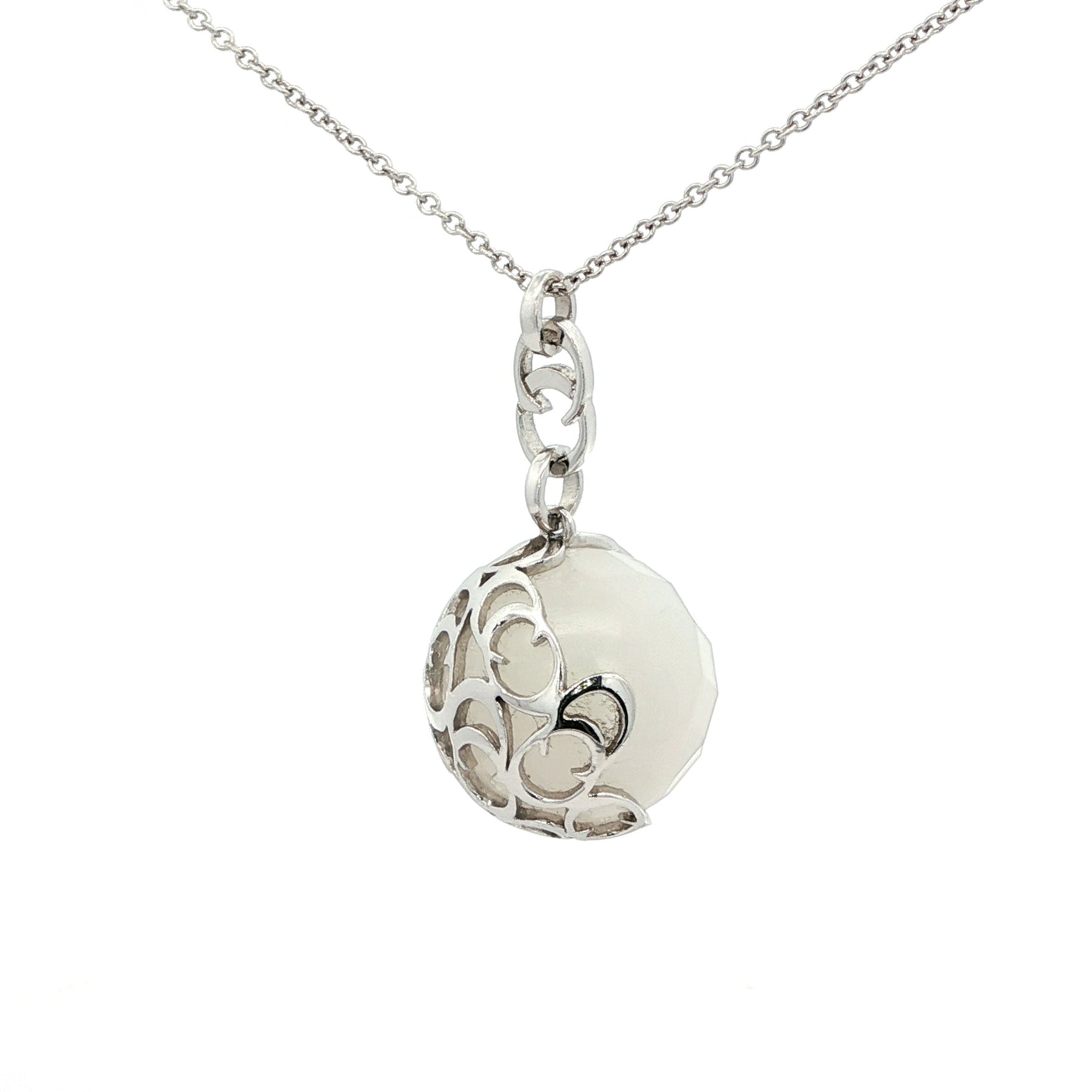 Chimento Quartz Pendant Necklace in 18K White Gold. The pendant measure approximately 0.75" wide, on a 24" cable chain, and has a total weight of 20.6 grams.