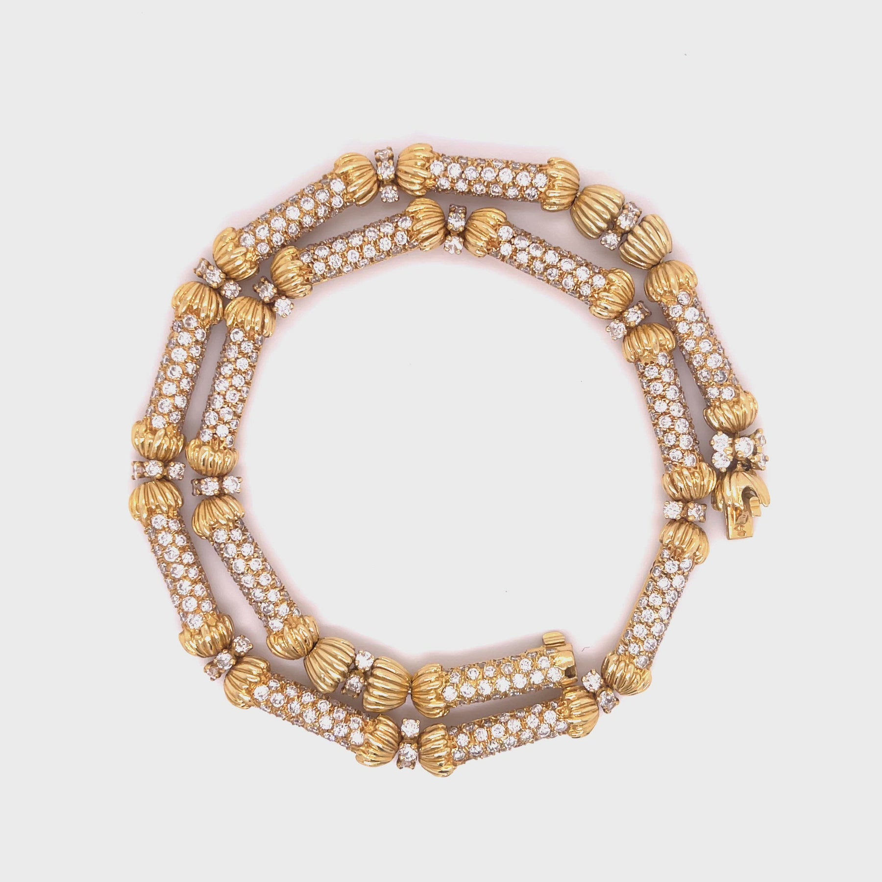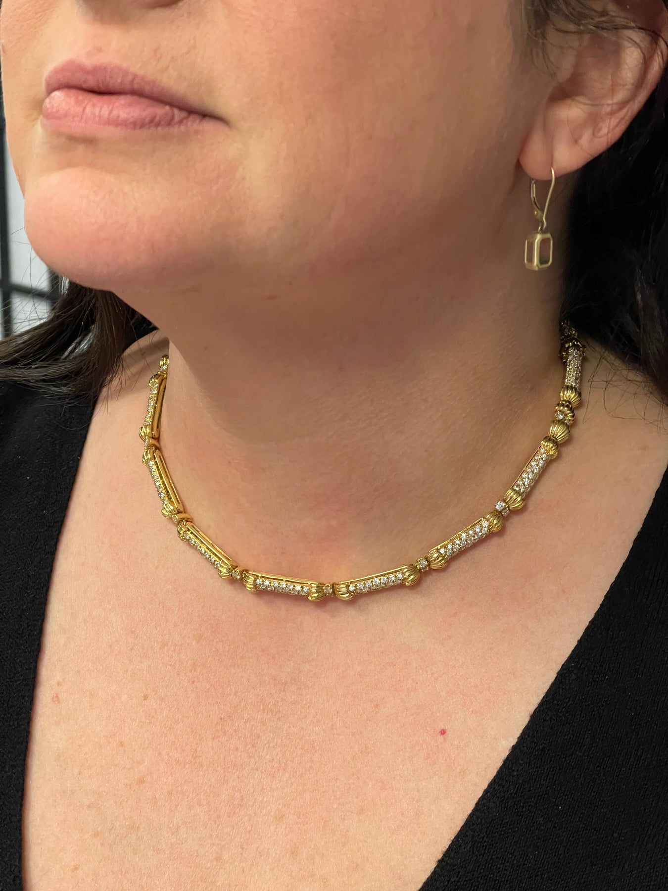 Estate Diamond French necklace in 18k yellow gold. The necklace features 12ctw of brilliant round diamonds.