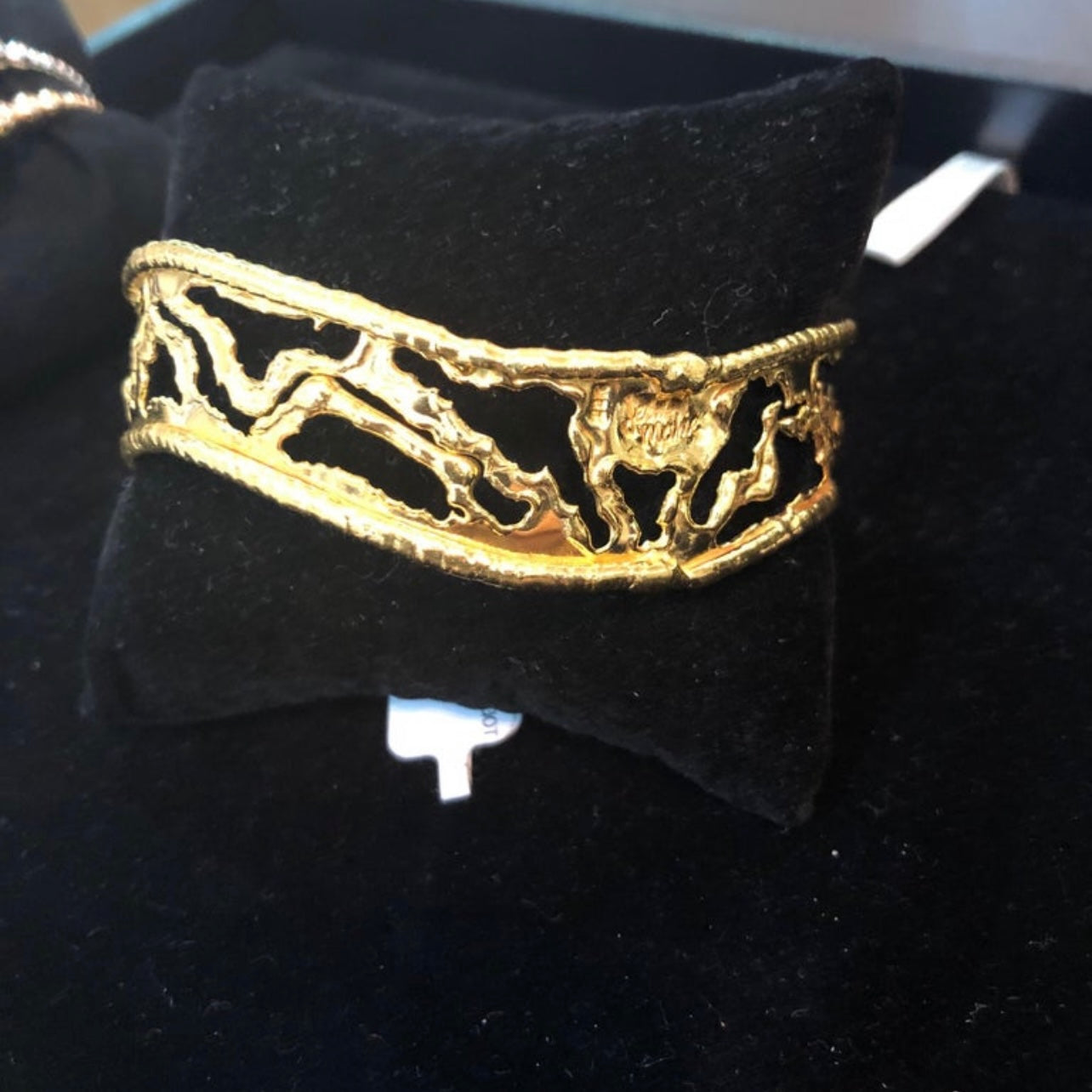 Stunning Estate Jean Mahie Pierced Bangle Bracelet. 22k Gold. Fits Size 8 wrist.