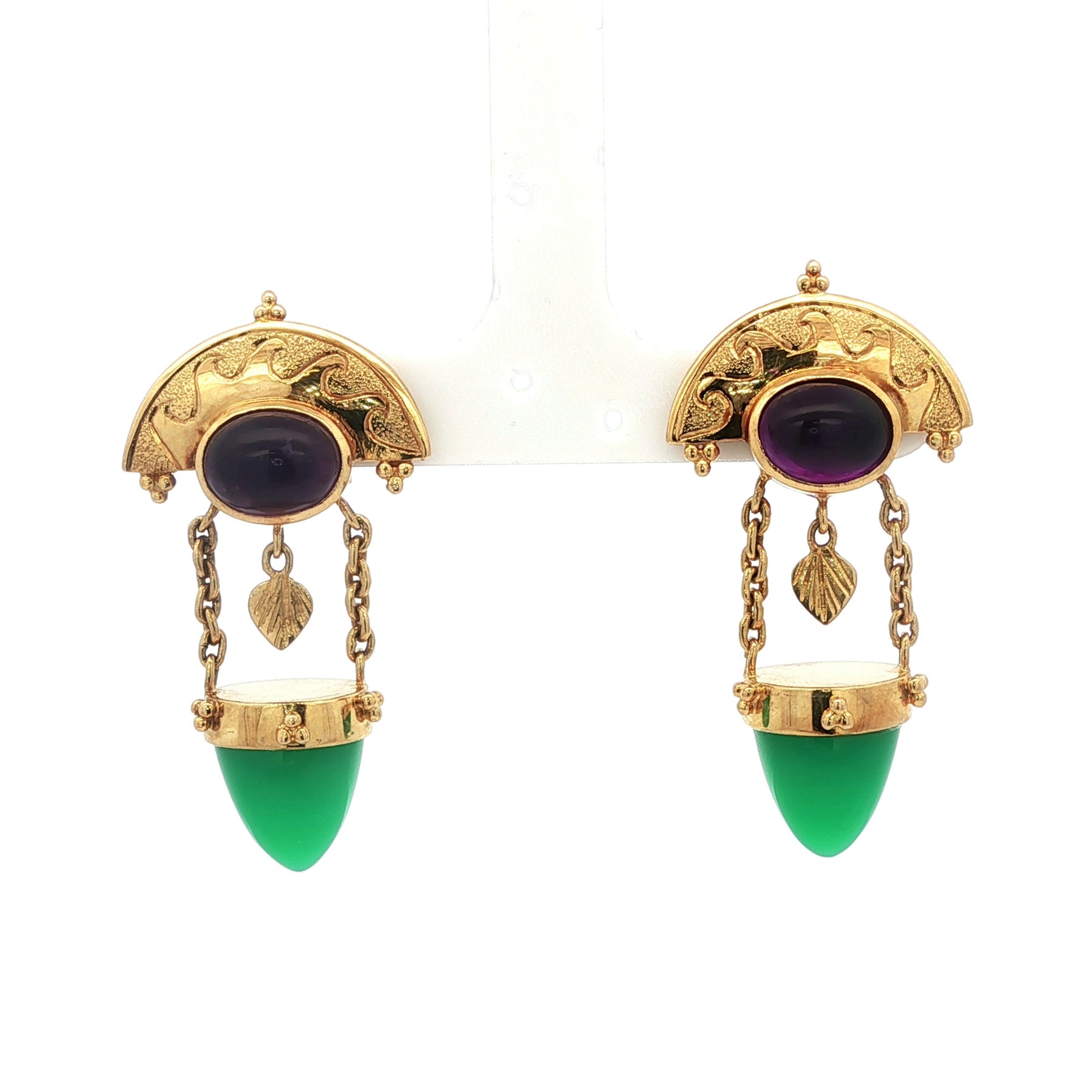 Estate Paula Crevoshay Amethyst & Chrysoprase Earrings 18K Yellow Gold