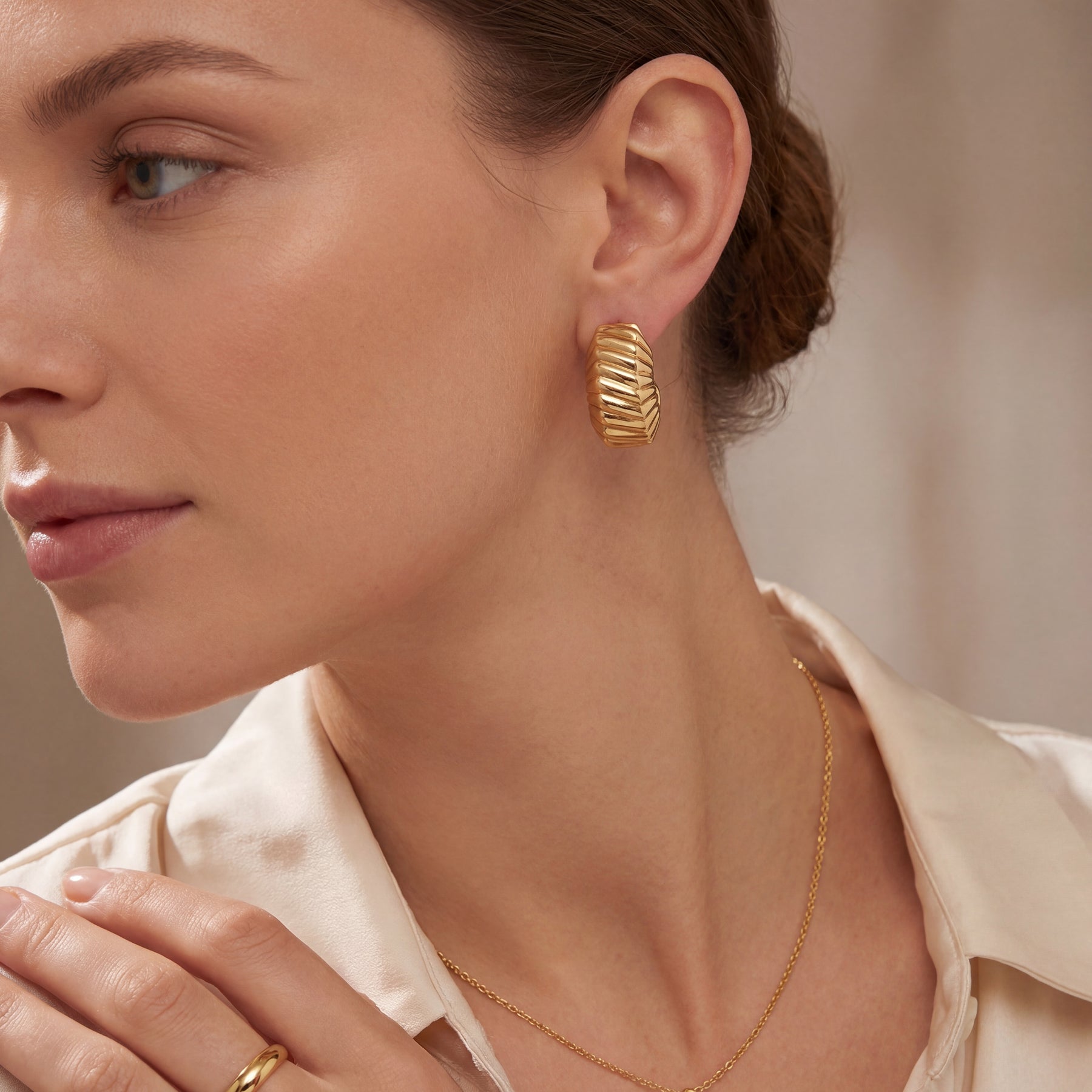 Estate Tiffany & Co. Small Ribbed Earrings 18K Yellow Gold
