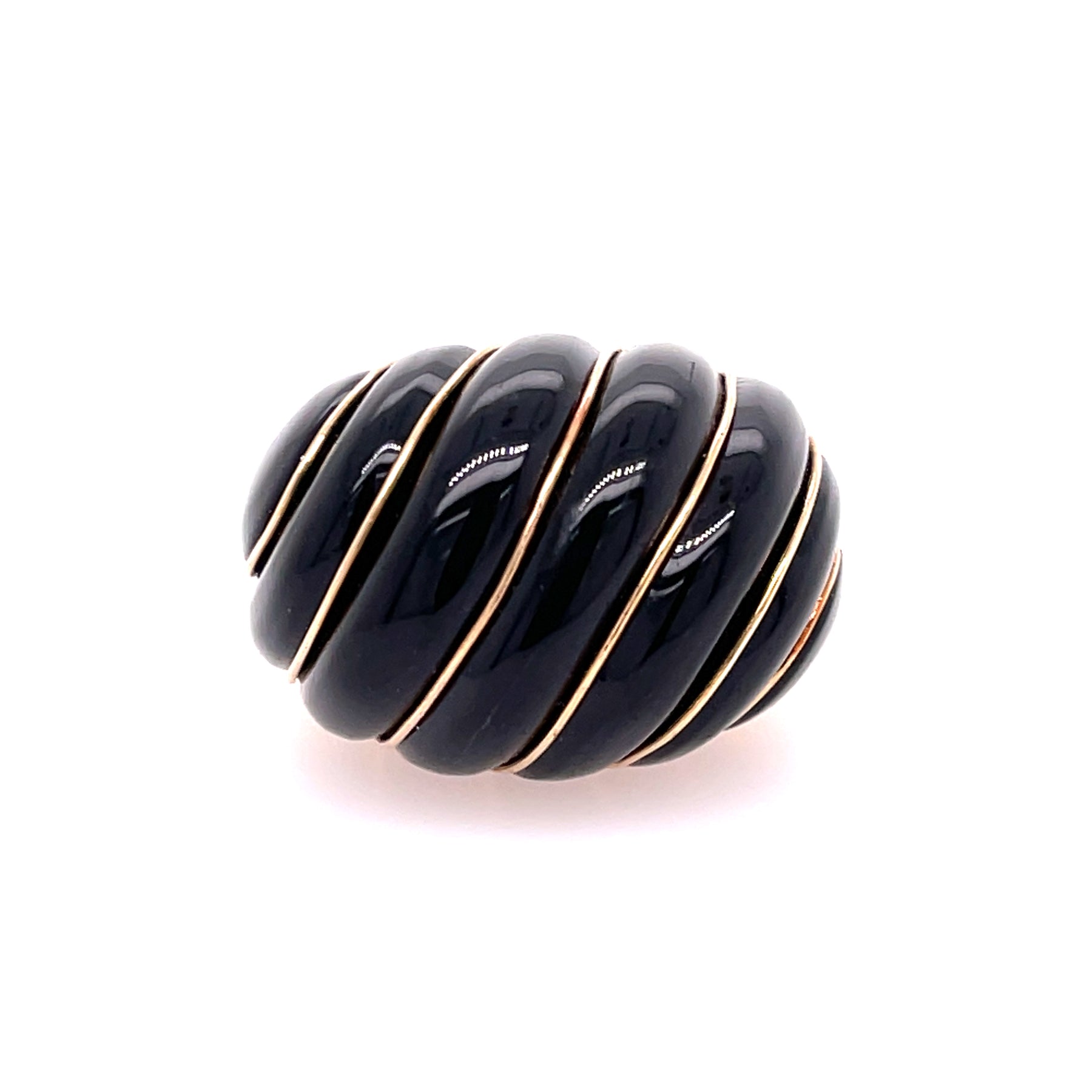 Onyx dome ring in 14K yellow gold. Size 8.5, can be sized. Marked 14K.