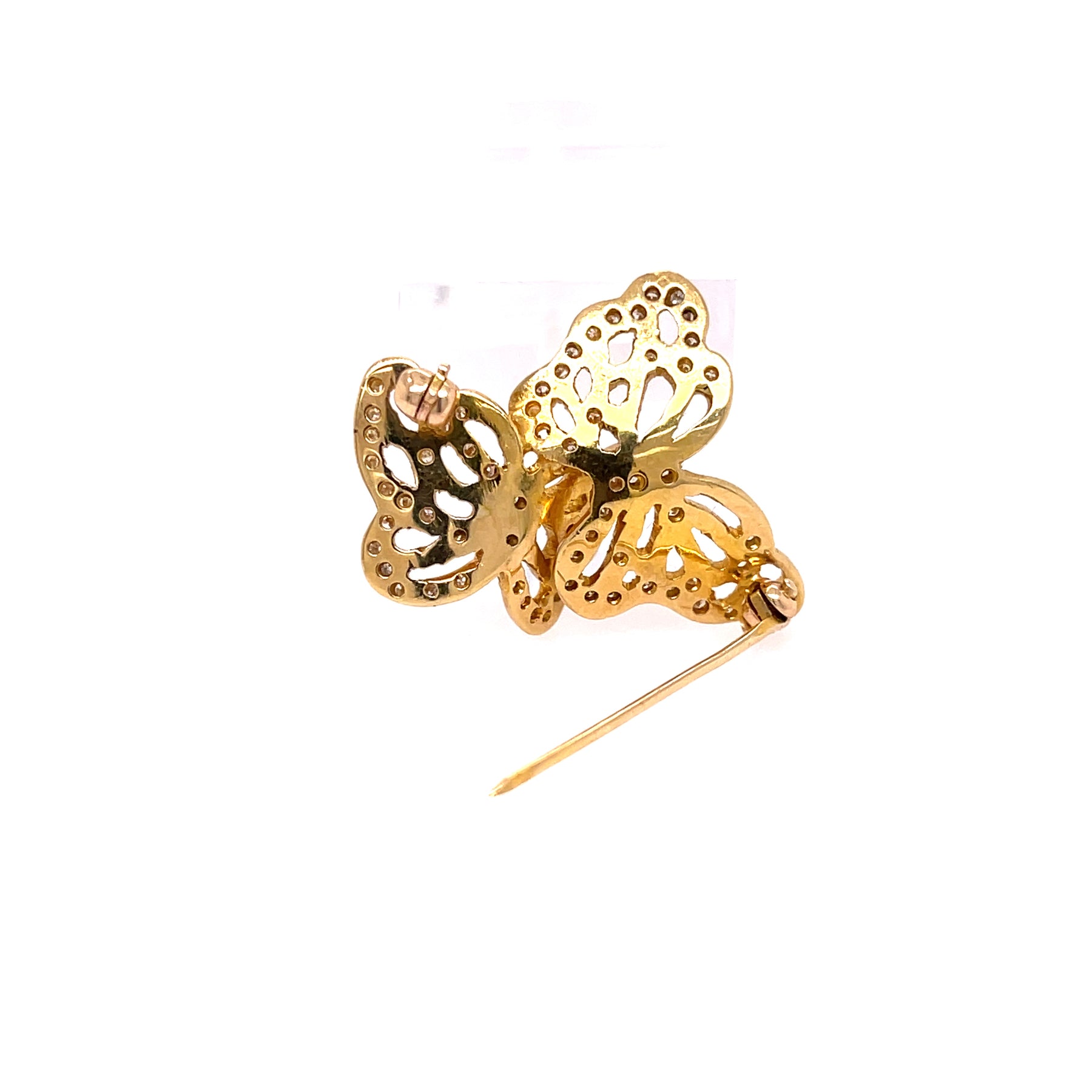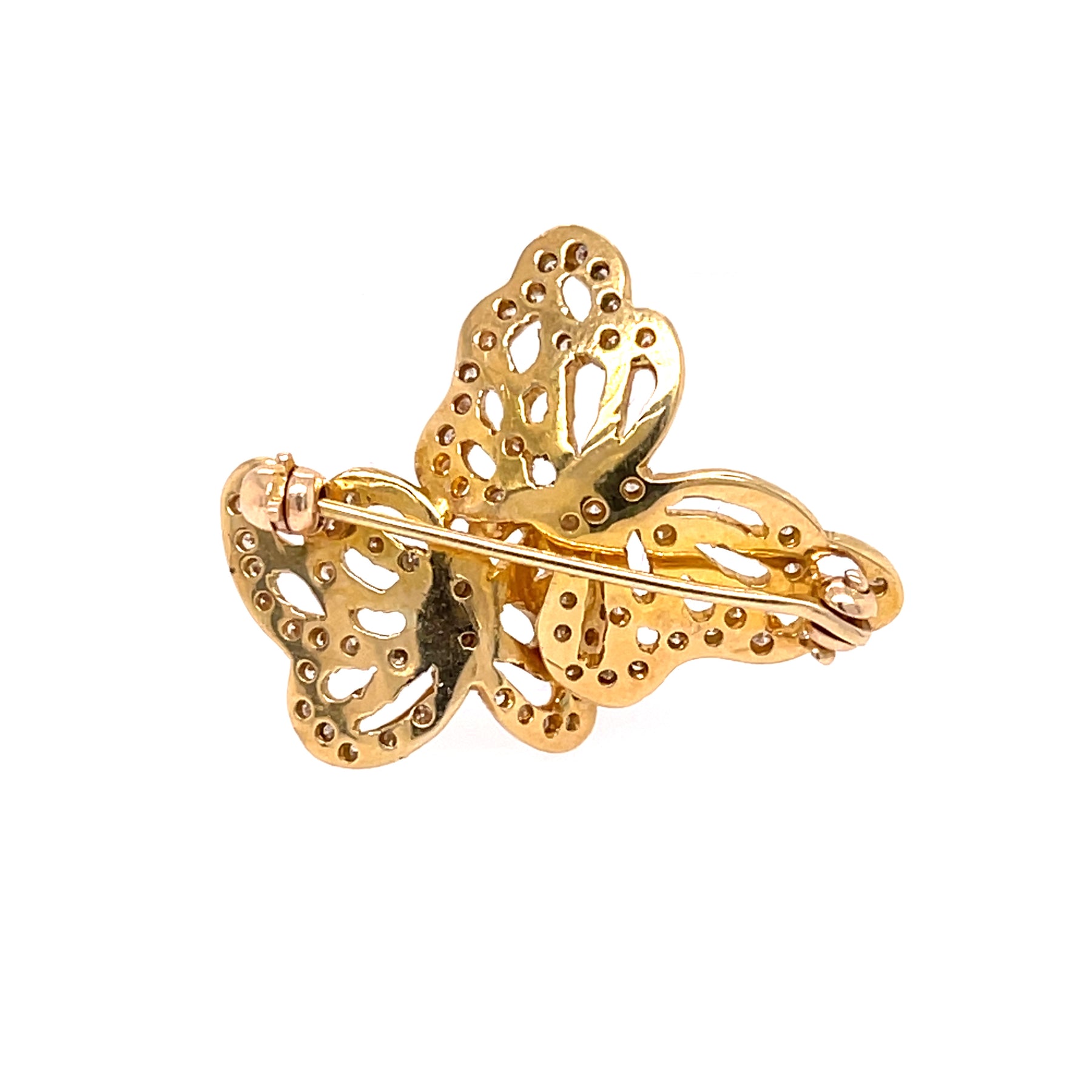 Papillon diamond pin in 18k yellow gold. The pin features approximately 0.70ctw of diamonds.