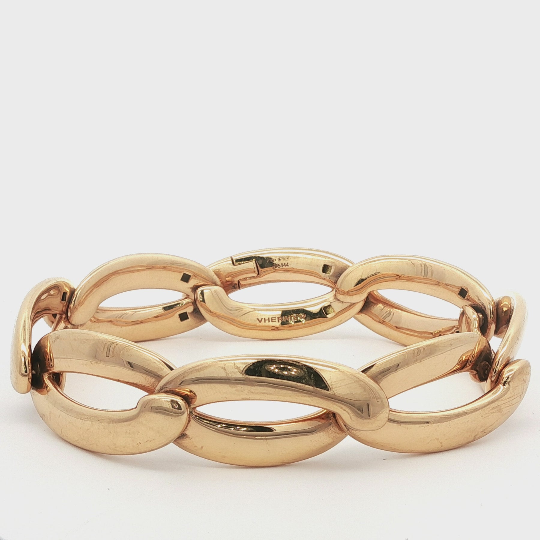 Vhernier Olimpia Link Bracelet in 18K Yellow Gold. The link is 7" long, 0.60" wide, and weighs 50.5 grams.