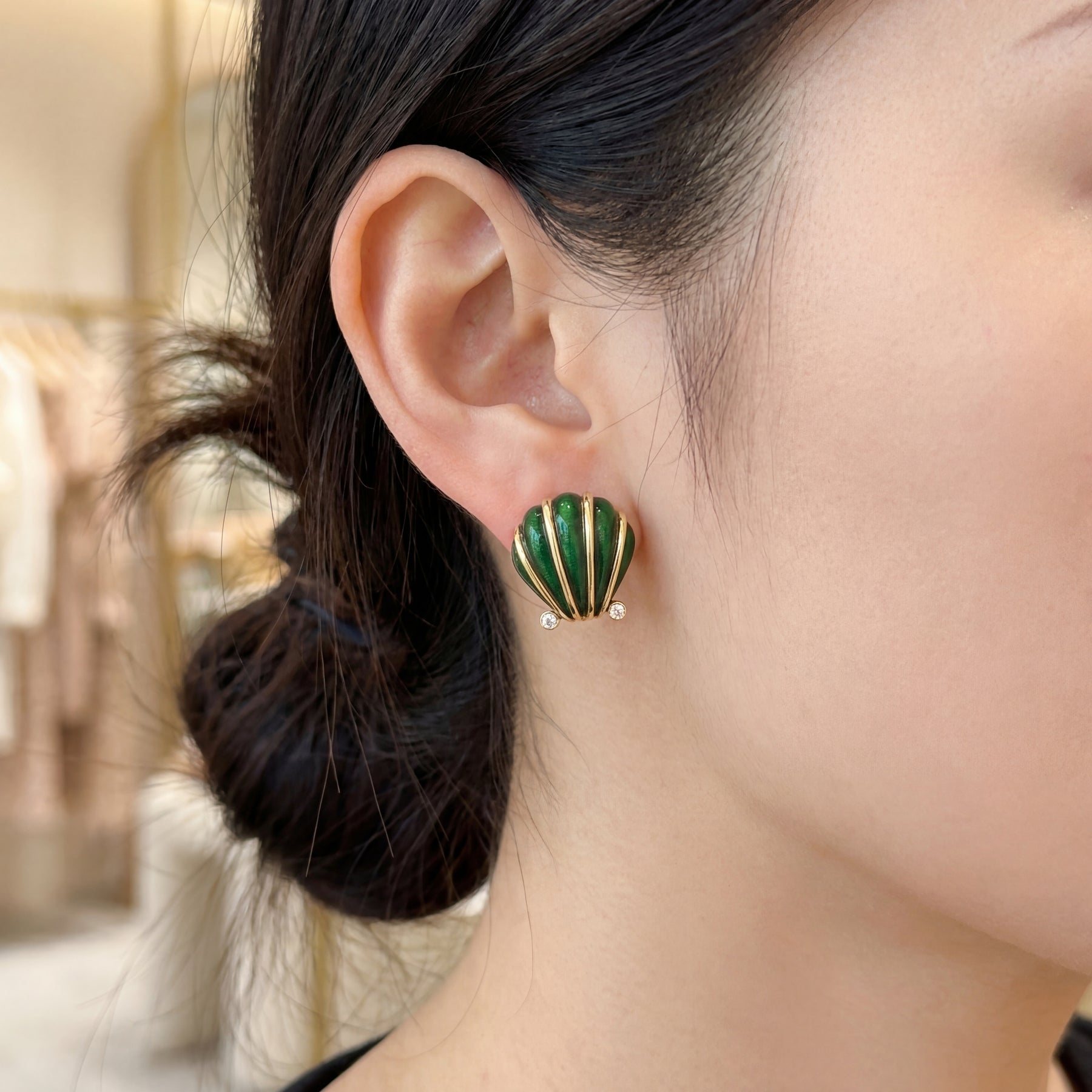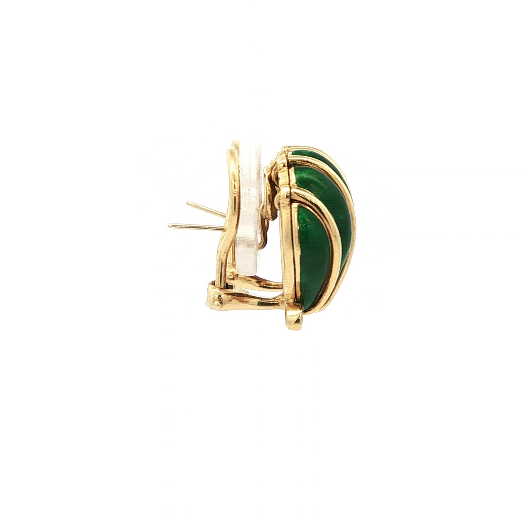 Tiffany & Co. Schlumberger Green Enamel Shell Earrings 18K Yellow Gold