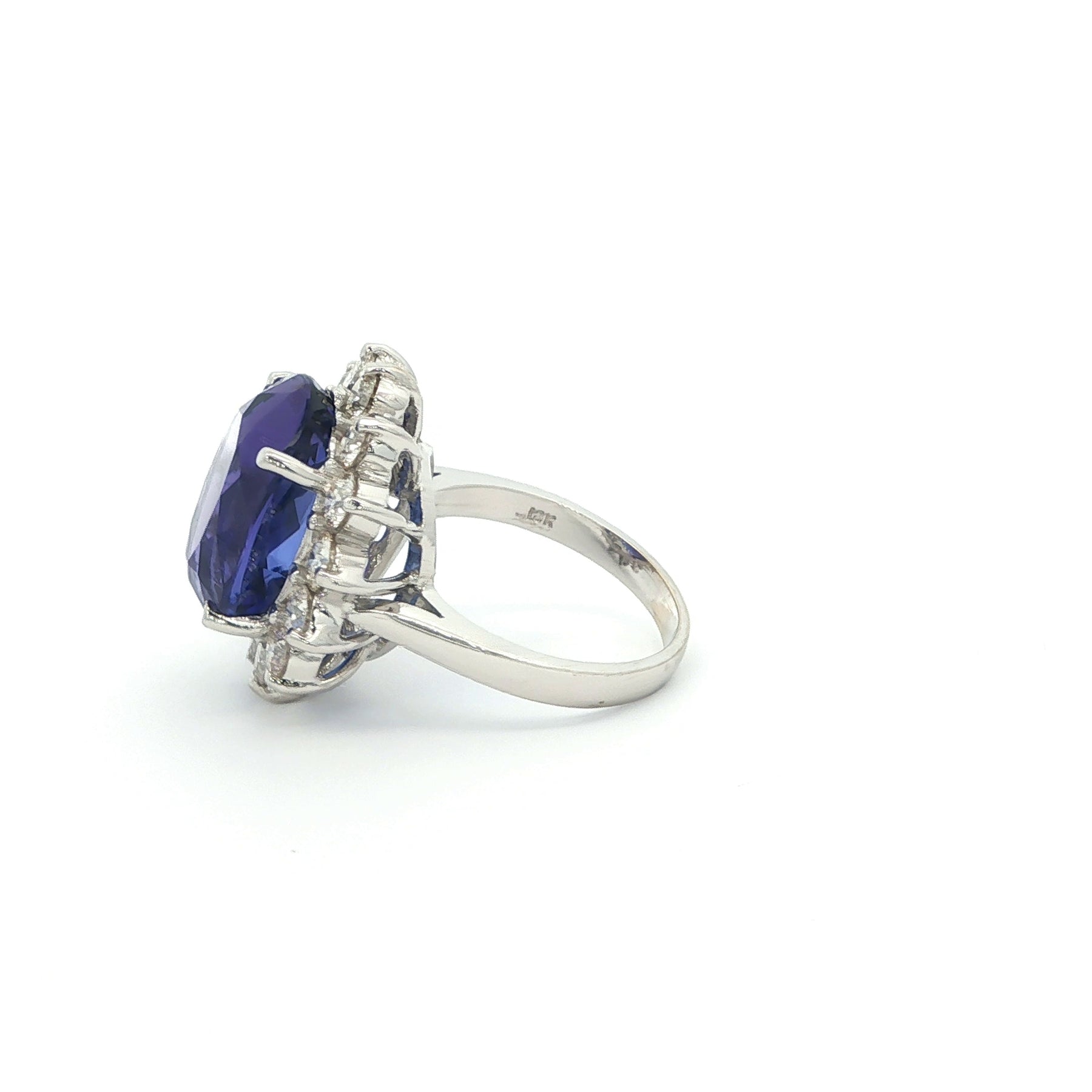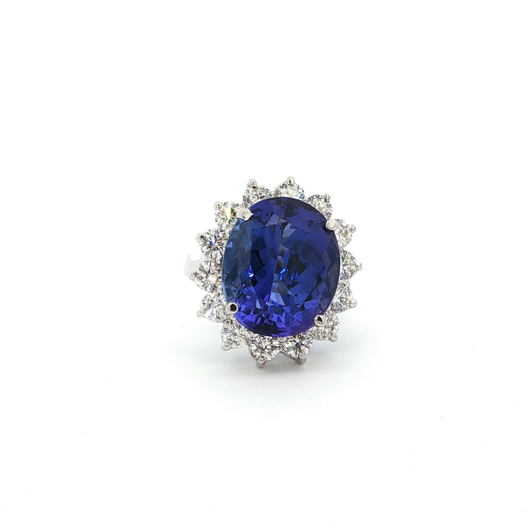 Oval 13.5ct Tanzanite & Diamond Halo Ring in 18K White Gold