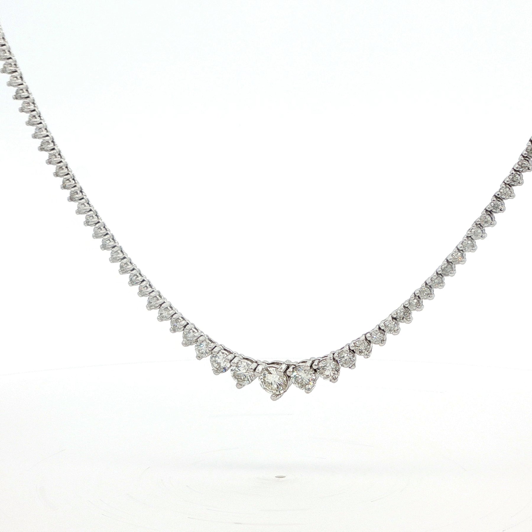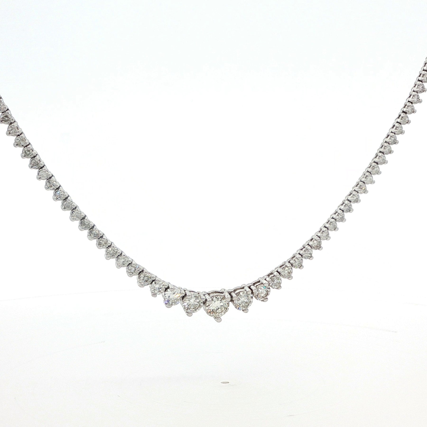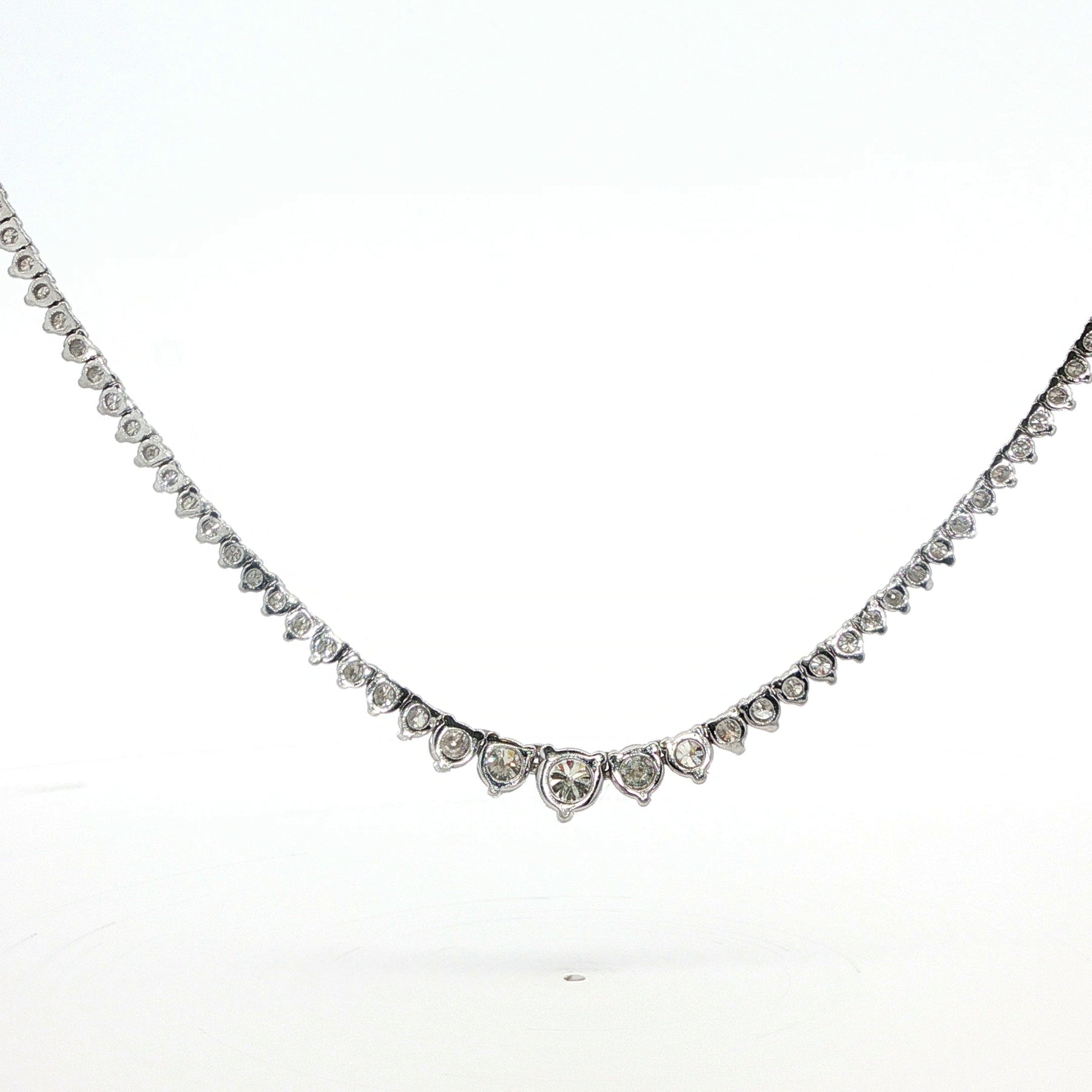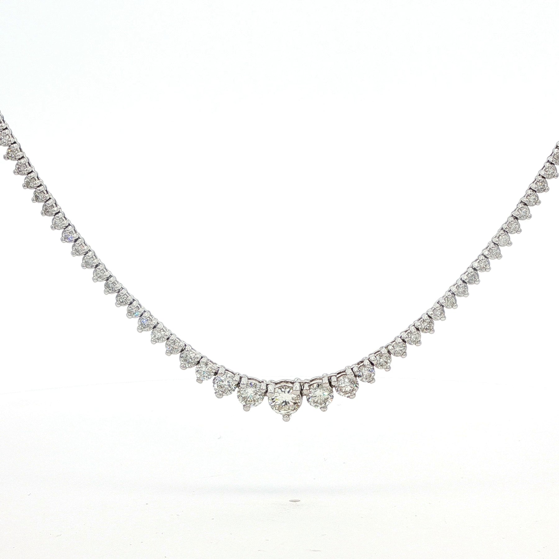 Diamond Riviera Necklace 14K White Gold. The necklace feature approximately 2.2ctw of brilliant round diamonds. The necklace is 18.5 inches long, has a lobster clasp, and weighs 14.3 grams.