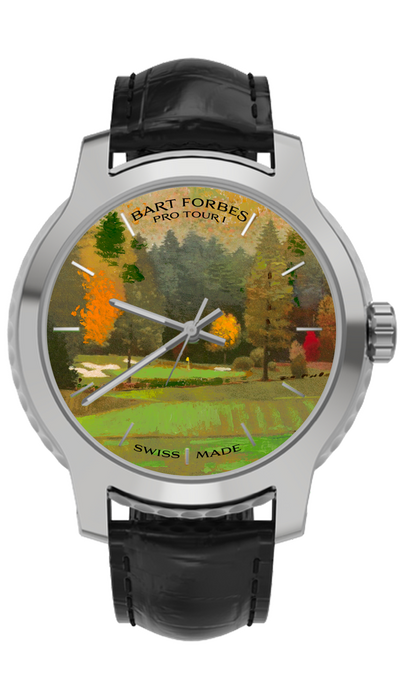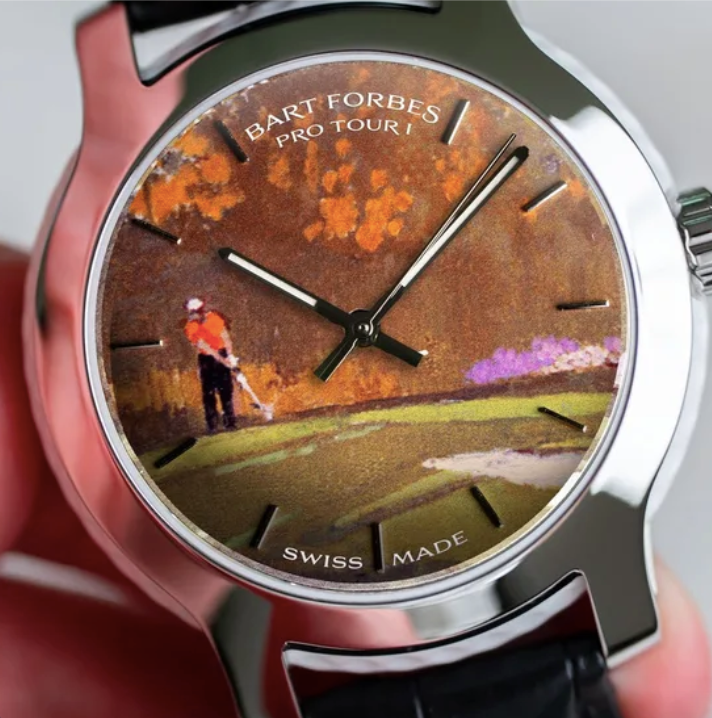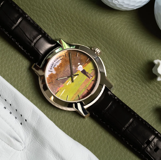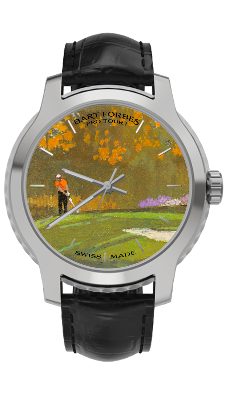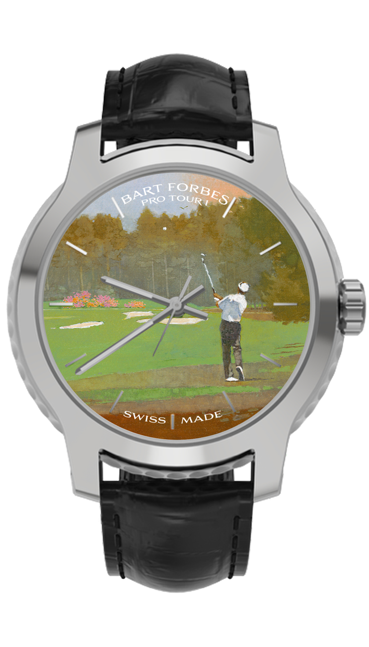 The Bart Forbes Chrono PRO Tour I unites fine Swiss watchmaking with the timeless vision of iconic American artist Bart Forbes. Featuring a custom dial adorned with his original golf artwork, each limited-edition timepiece is a wearable canvas celebrating precision, performance, and passion. Crafted for collectors, enthusiasts, and players alike, this is more than a watch; it’s a piece of history.