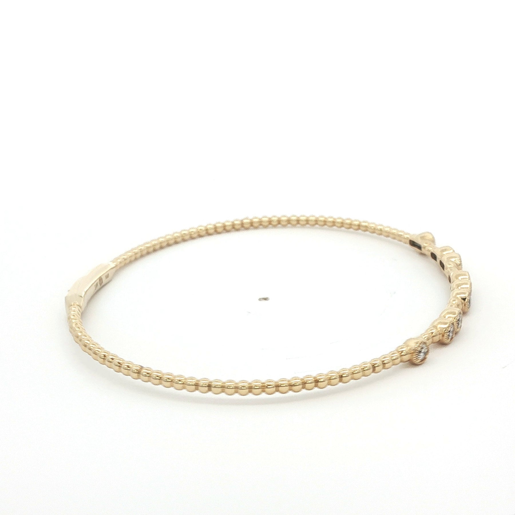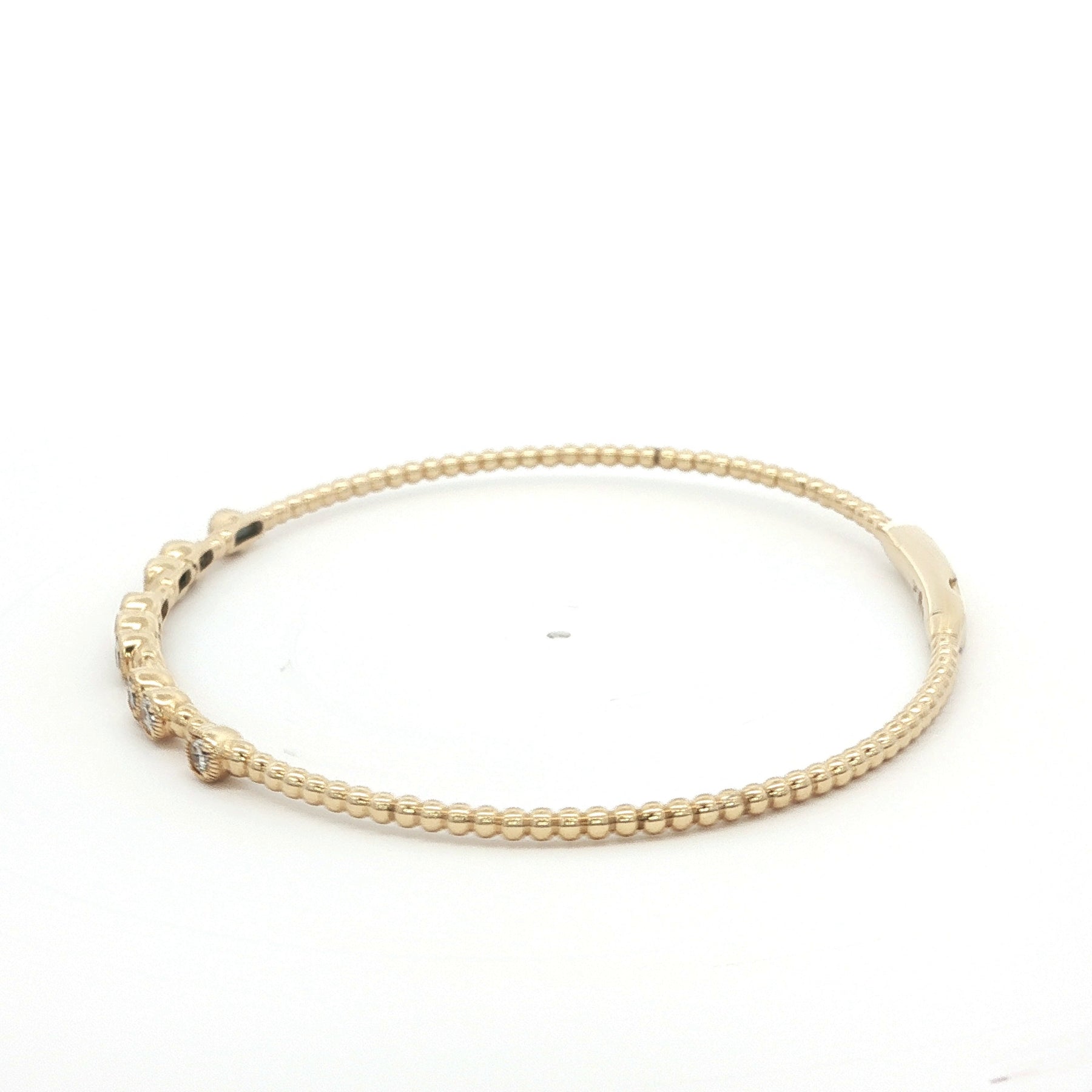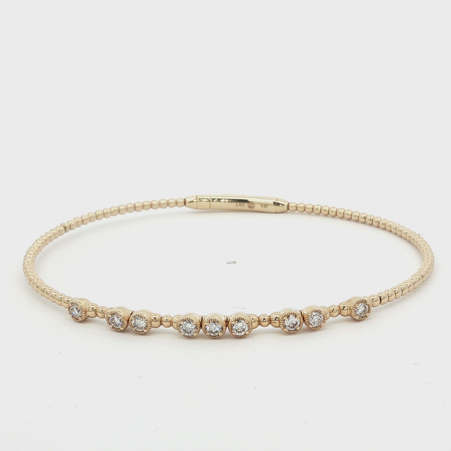 Flexible Bead Diamond Bangle 14K Yellow Gold. The bangle features 0.45ctw of bezel set Round Brilliant Diamonds