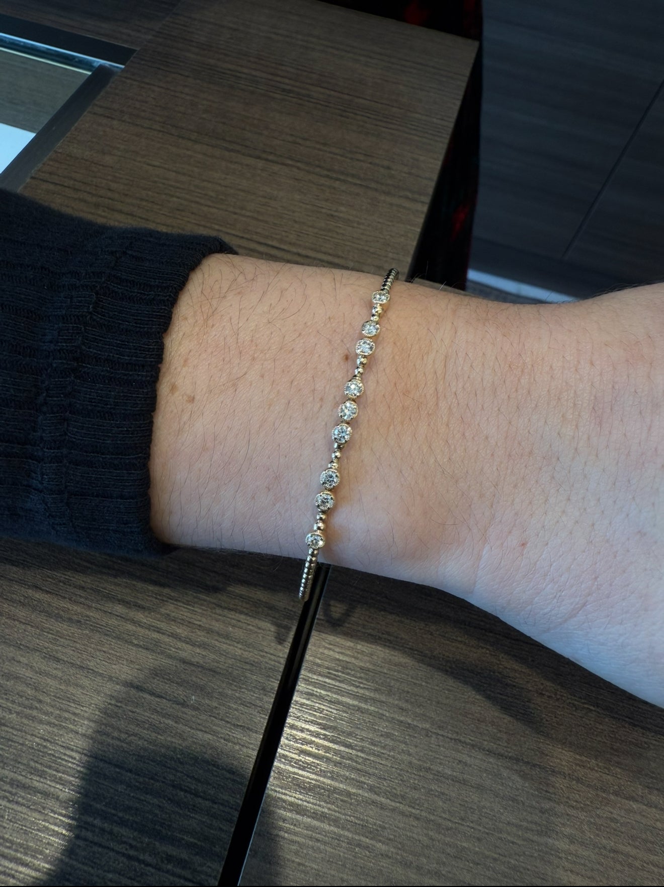 Flexible Bead 0.45ctw Round Diamond Bangle 14K Yellow Gold