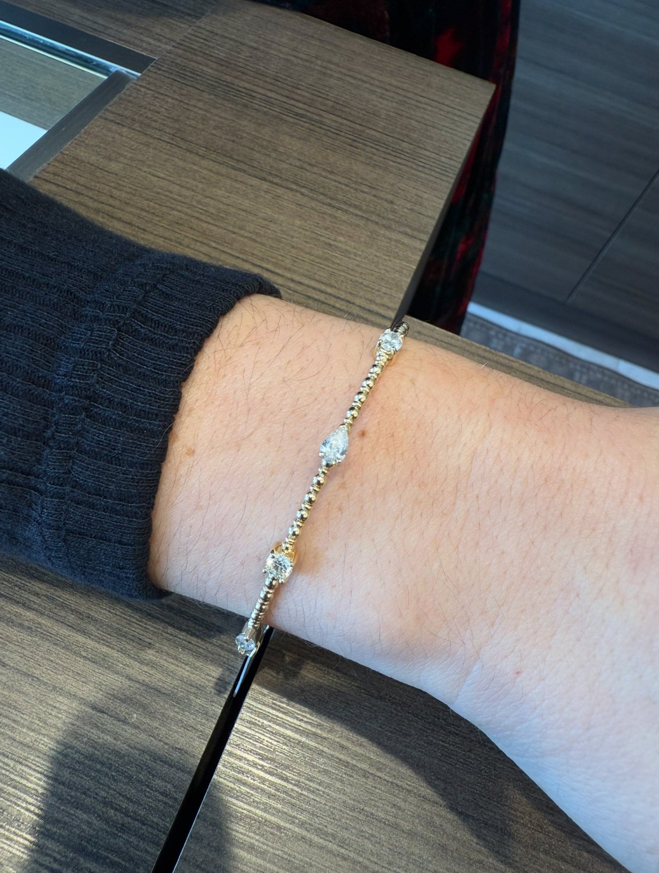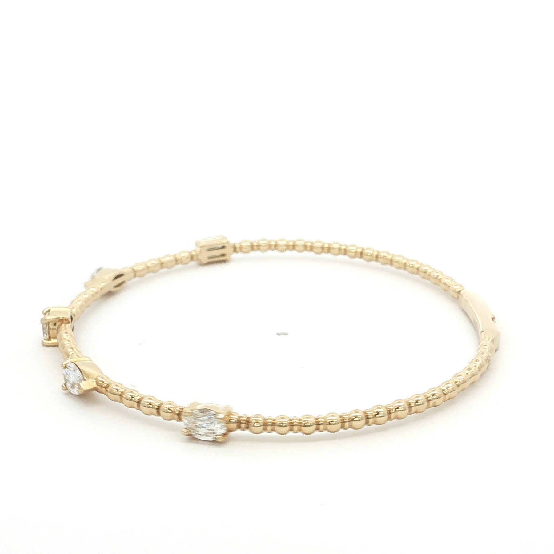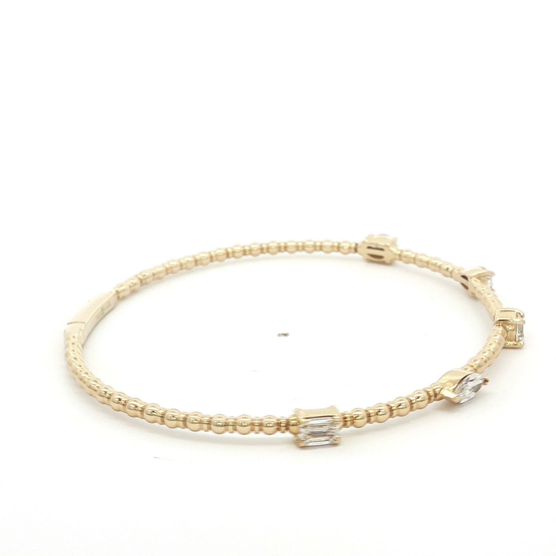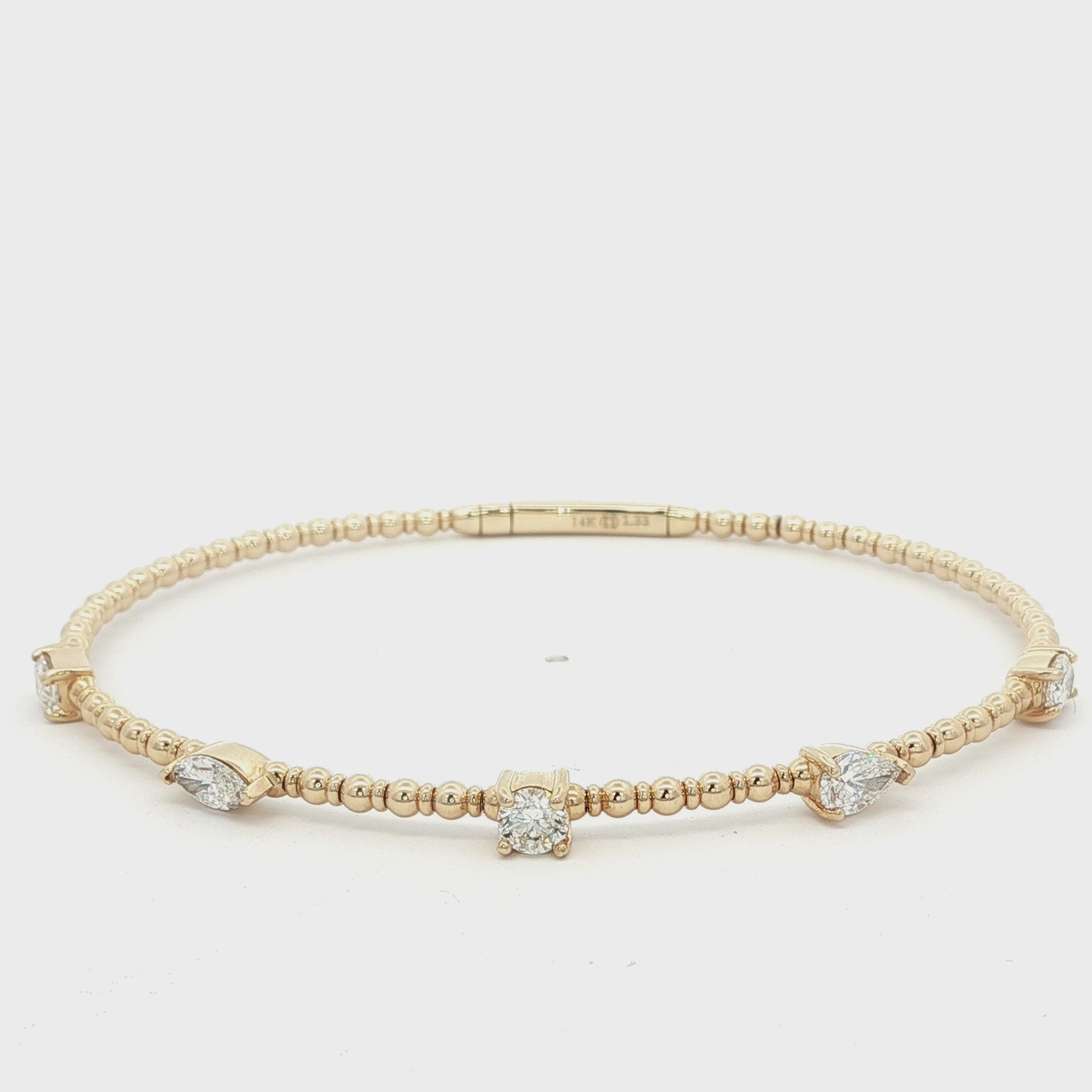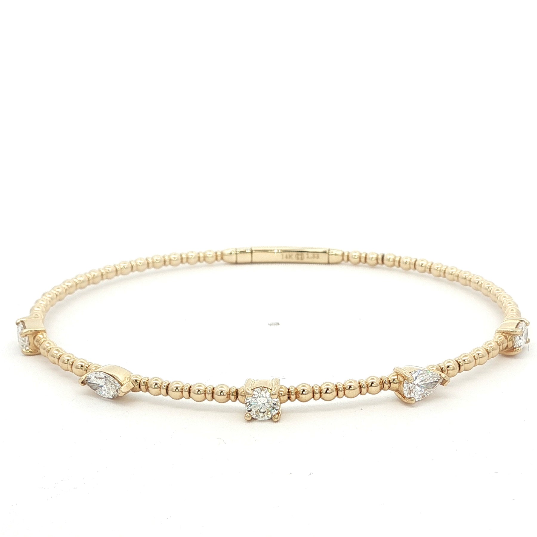 Flexible Bead Diamond Bangle 14K Yellow Gold. The bangle features 1.33ctw of Oval, Pear, Marquise, Emerald, Round Brilliant Diamonds.
