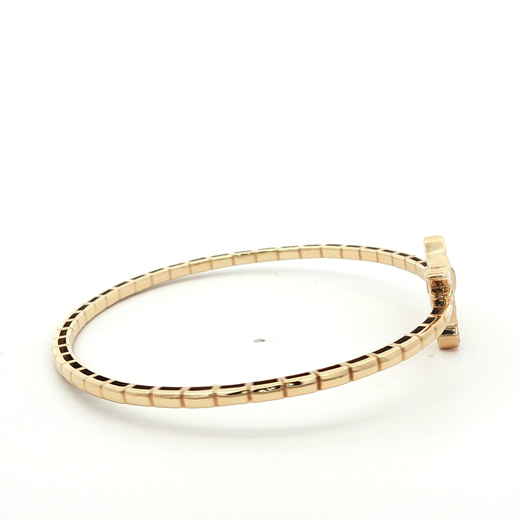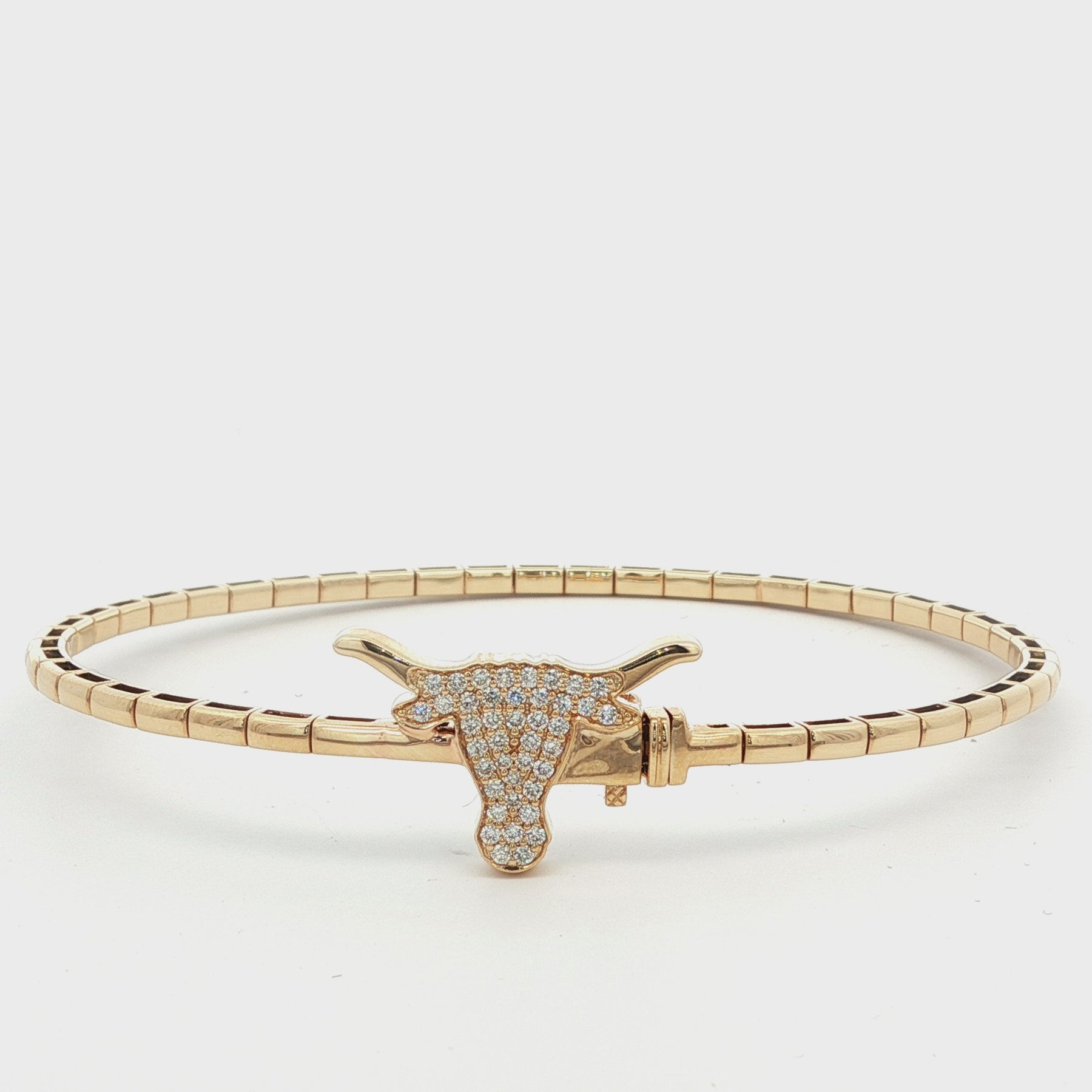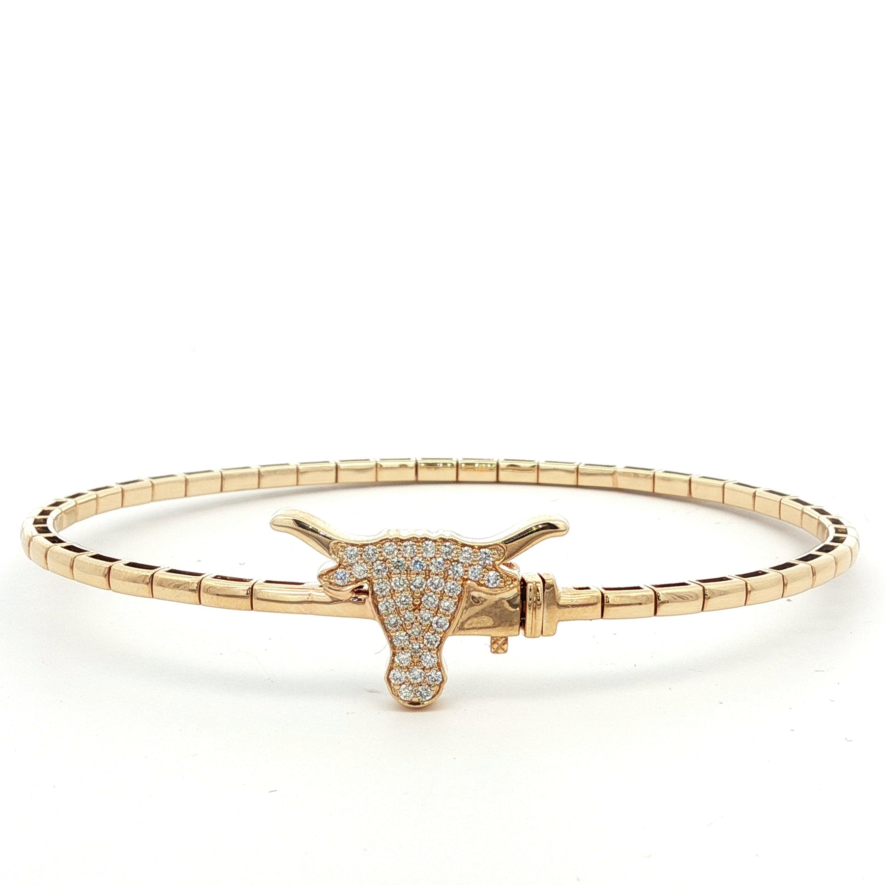 Diamond Longhorn Flex Bangle in 14K Yellow Gold. The bangle features 0.27ctw of pave set brilliant round diamonds. Wrist size 7", weighs 7.8 grams.