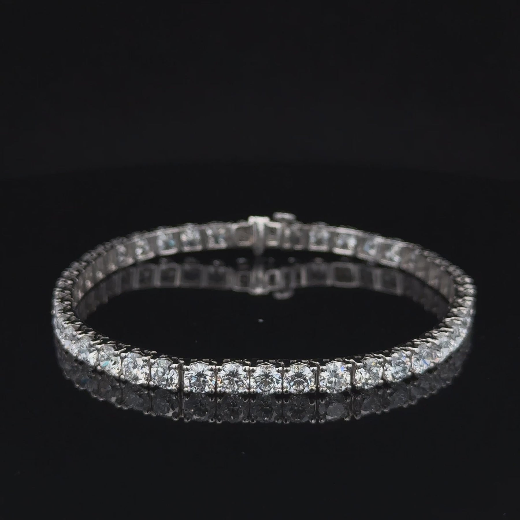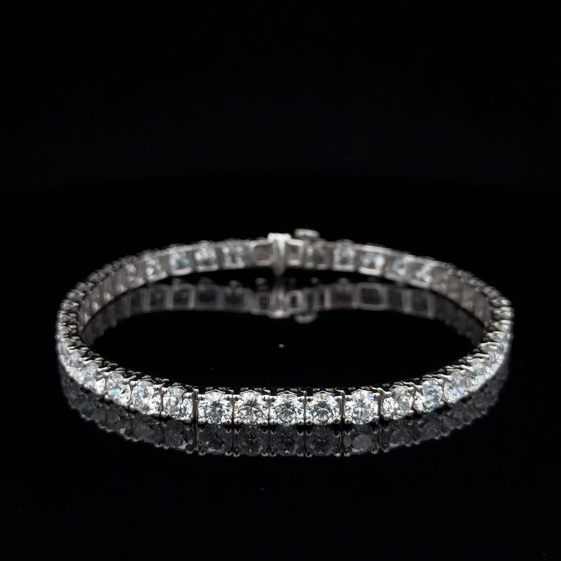 Lab Grown 10ct Diamond Tennis Bracelet in 14K White Gold. The bracelet is 7 inches long and 4mm wide.