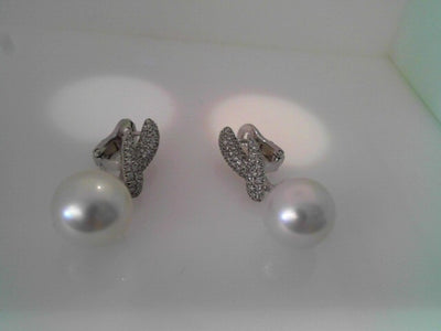 18KW UTOPIA 13.5MM WH PEARL DIA EARRINGS